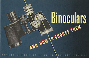 Bausch & Lomb Binoculars And How To Choose Them, Aug. 1955, the complete thirty-six (36) page illustrated booklet describing the Bausch & Lomb binoculars, monocular, and two spotting telescopes. This is among the last of their sporting optics catalogs published while their products line still resembled those they had made for some decades in the United States. Though soon after the war they and other manufacturers commenced exporting U.S. based jobs to Japan, this catalog does explain "Every Bausch & Lomb Binocular is built to precision-instrument standards to give life-time service and satisfaction- and it is the only binocular of American manufacture on the market today."