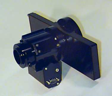 Right: TCF-S3 with gear cover removed. All gears are made from 303 stainless (45,997 bytes). Temperature Compensation Most telescopes are made with components that may expand or contract as the ambient temperature changes. This can produce a change of focus over the course of a long exposure, or series of shorter exposures. Unique to the TCF-S3 focuser is an electronic controller circuit and thermal sensor which monitors the telescope's tube temperature and notes any changes which then cause the TCF-S3 motor to make minute adjustments to compensates the focus accordingly. For an example of the effects of thermal changes, consider the focus changes of a typical Schmidt-Cassegrain of 8 or 11 inches aperture and f/10 focal ratio; the back focus will move by approximately 0.010 inches for every one degree C (1°C) temperature change in telescope temperature. It is not unusual for the ambient temperature during an observing session to change by as much as 10°C within the time span of a few hours. The change in focus due to temperature is a serious problem for most production telescopes, a typical RGB exposure sequence can last one hour making it imperative that the focus be checked and corrected after each filter change. The TCF-S and TCF-S3 systems includes a compact temperature probe which is attached onto the side of the telescope tube. This probe is sensitive to changes of temperature with a resolution of 0.1°C. It transmits temperature information through a 20 inch (51cm) long flexible signal cable into the electronic controller of the TCF-S or TCF-S3 focuser. Initially a simple learning procedure is used to find the temperature coefficients specific to the user's telescope system. The TCF-S3 system allows for two different coefficients (corresponding to the operators choice of two different f-ratio configurations) to be calculated and then stored in the EPROM memory. Once learned and programmed into the TCF-S3, either coefficient can be selected with a simple slide switch. The TCF-S3 also provides a manual mode which allows the user to set the focus manually by push buttons on the Hand Control or remotely with appropriate software at any time. The digital nature of the TCF-S3 allows opportunities for truly intelligent focusing. With the current OPTEC TCF-S.EXE, version 1.21 software, users can communication directly with the focuser's controller (located in the Hand Control) via any serial port. The simple ASCII protocol is easily programmed and has been implemented in many popular imaging and camera control software packages. For example, CCDSoft Version 5 and later* by Software Bisque offers the @Focus© routine which communicates with the TCF-S3 via a serial port to provide truly automatic focus control. And MaximDL/CCD Version 3 and later** by Cyanogen provides remote and automatic focus control with the TCF-S3 focuser too.