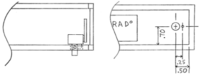 Above: Drawings of Pulser installation in forward right wall; dimensions are in inches.